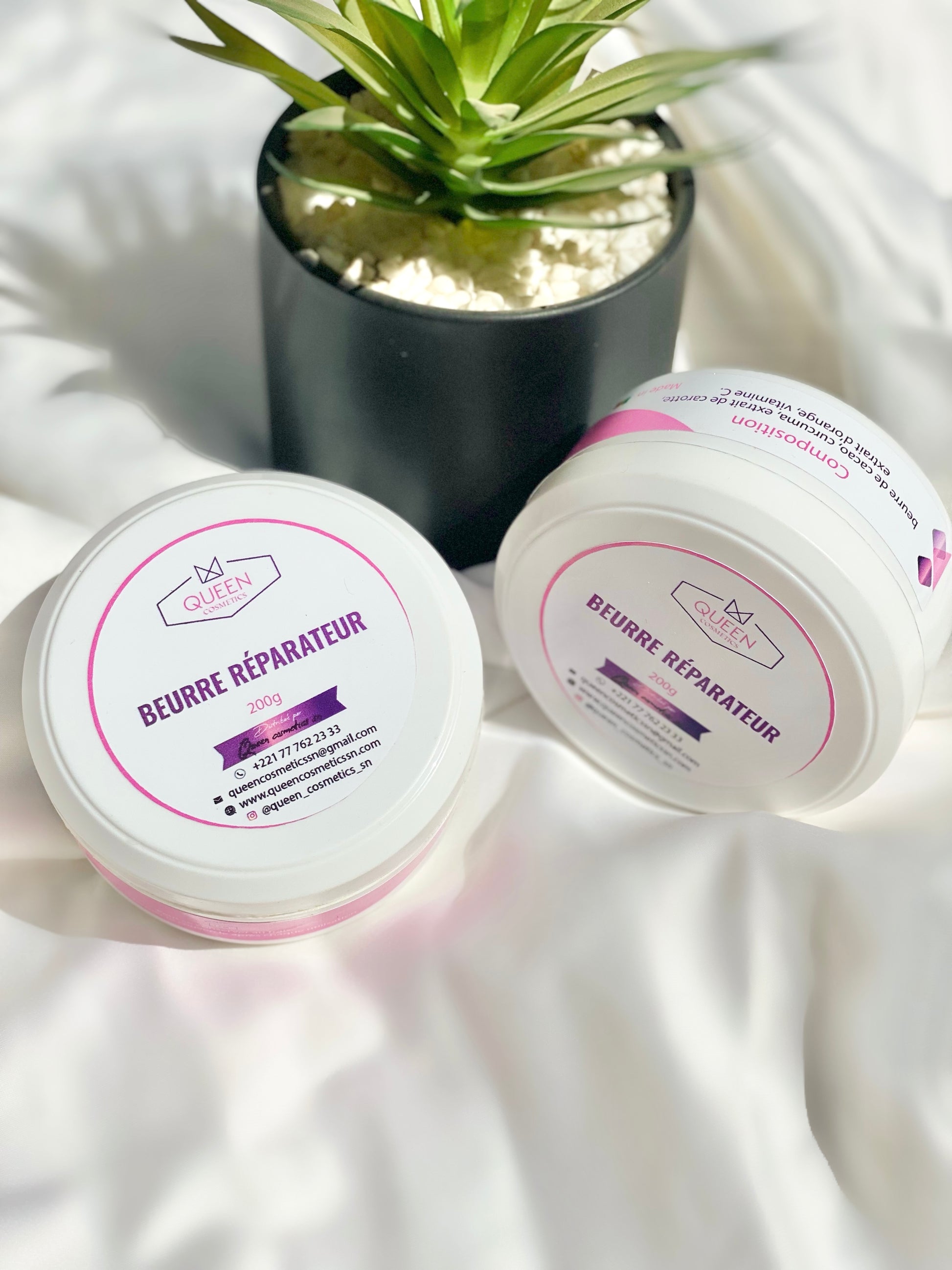 Beurre réparateur, cette combinaison d’ingrédients riches et nourrissants vous hydrate intensément et répare les lésions occasionnées par les rayons solaires, les peaux abîmées par la dépigmentation et l’utilisation des mauvais produits. Également très efficace contre les vergetures, la peau sèche, craquelée ou ridée. Vous pouvez l’alterner avec votre lait de corps tous les 2 à 3 jours ou l’utilisez matin et soir en traitement sur les vergetures. C’est un soin qui aide à la régénération et au maintien de votre peau.