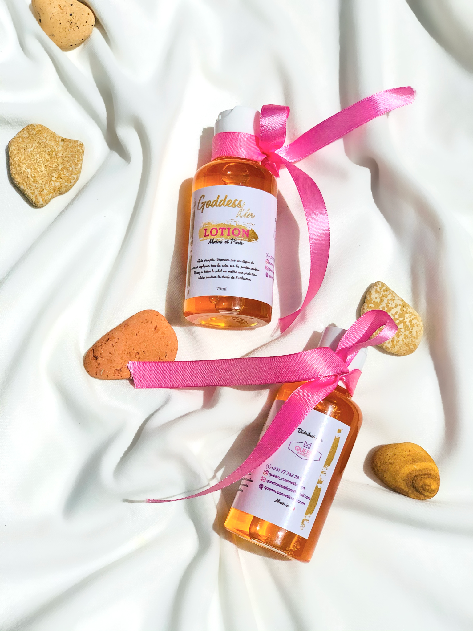La lotion mains et pieds de la gamme GODDESS SKIN est conçue pour vous aider à avoir un teint uniforme. Certaines en s’éclaircissant ont des soucis de phalanges noires appelés quintaux ou des corps sur les pieds. Également les genoux et coudes. Cette lotion à effet peeling va tout traiter en peu de temps. Elle est performante contre les tâches rebelles.